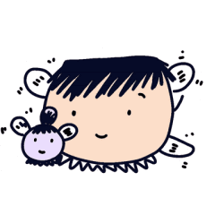Origin The creatures in the sticker are called little E and purple, they are main characters in my childhood stories and are precious memory